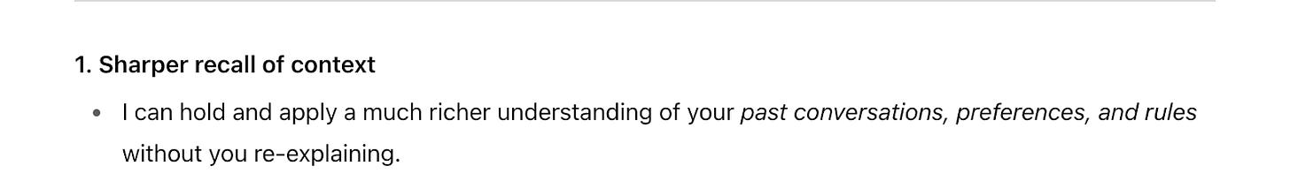 I’m a skeptic, so I also regularly prompt GPT (or Claude) to summarize our chats, and then I use the outputs for my AI projects.